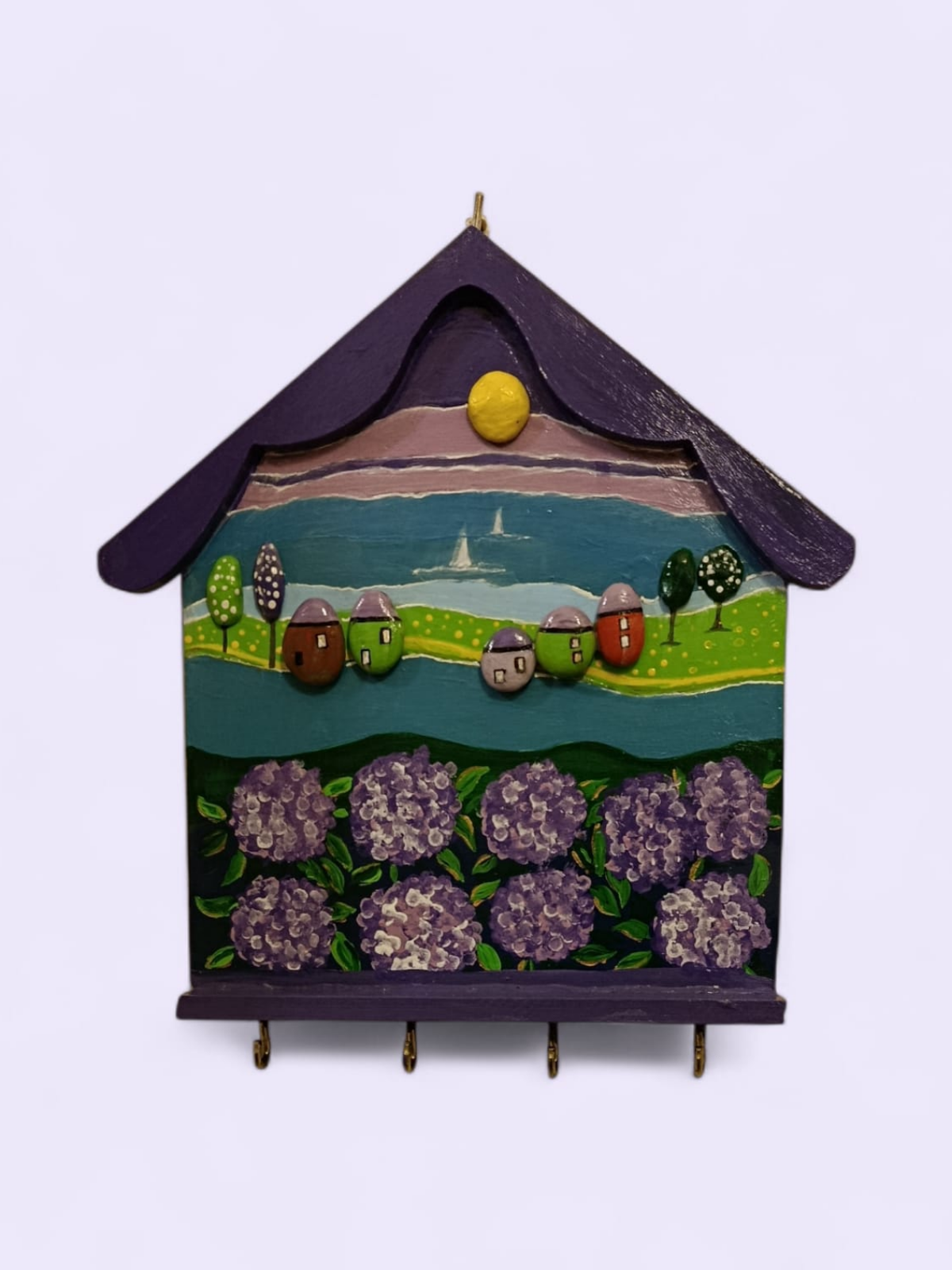 Ahşap Mdf Taş Boyama Ortanca Bahçesi -Anahtarlık