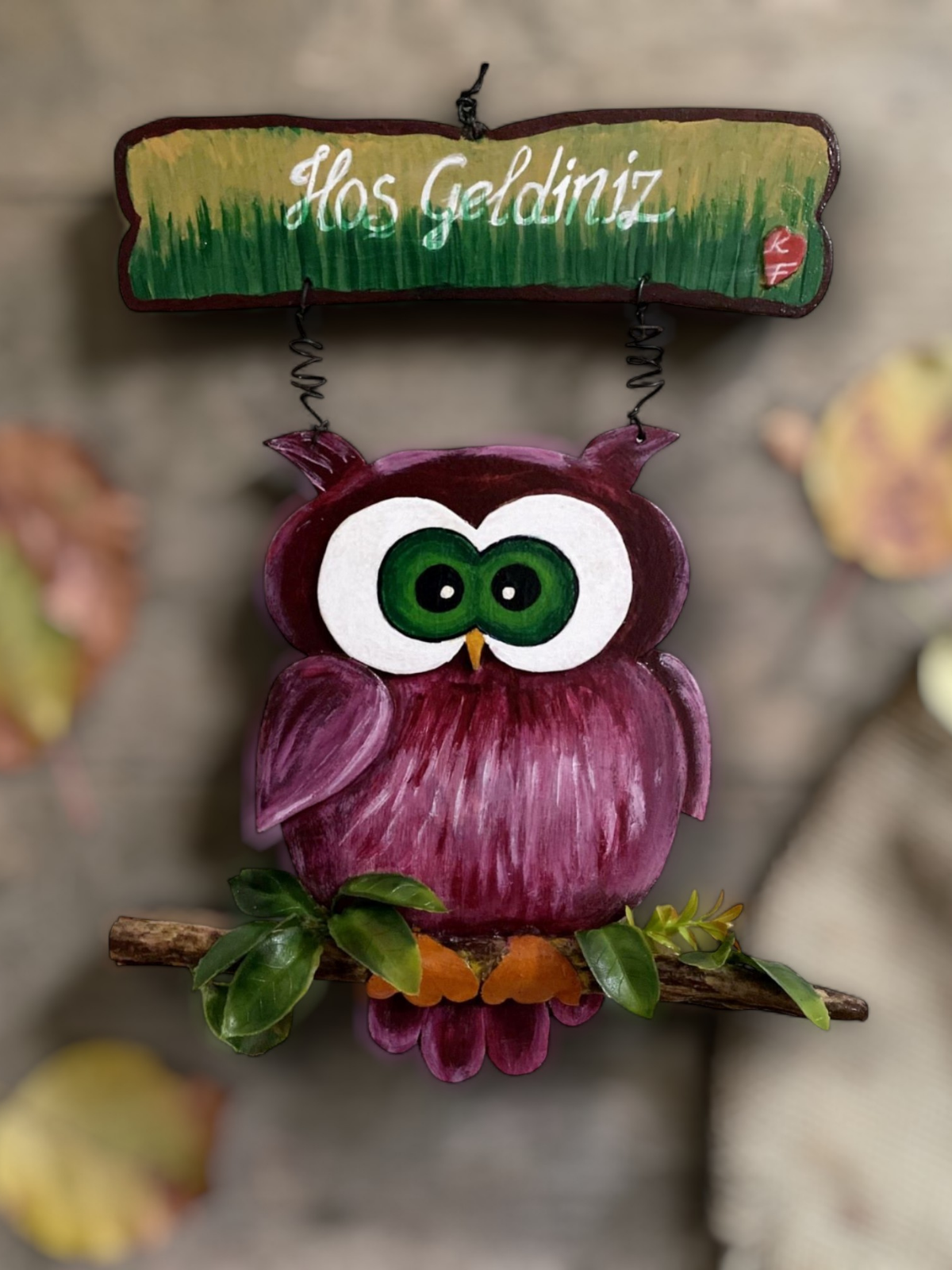 Bilge Baykuş – Hoş Geldiniz Kapı Süsü, evinize adım atıldığı anda sıcak ve samimi bir karşılama sunmak için tasarlanmıştır. MDF zemin üzerine akrilik boya ile tamamen el işçiliğiyle boyanan bu özel kapı süsü, sevimli baykuş figürü ve “Hoş Geldiniz” yazısıyla misafirlerinize neşeli bir ilk izlenim bırakır.