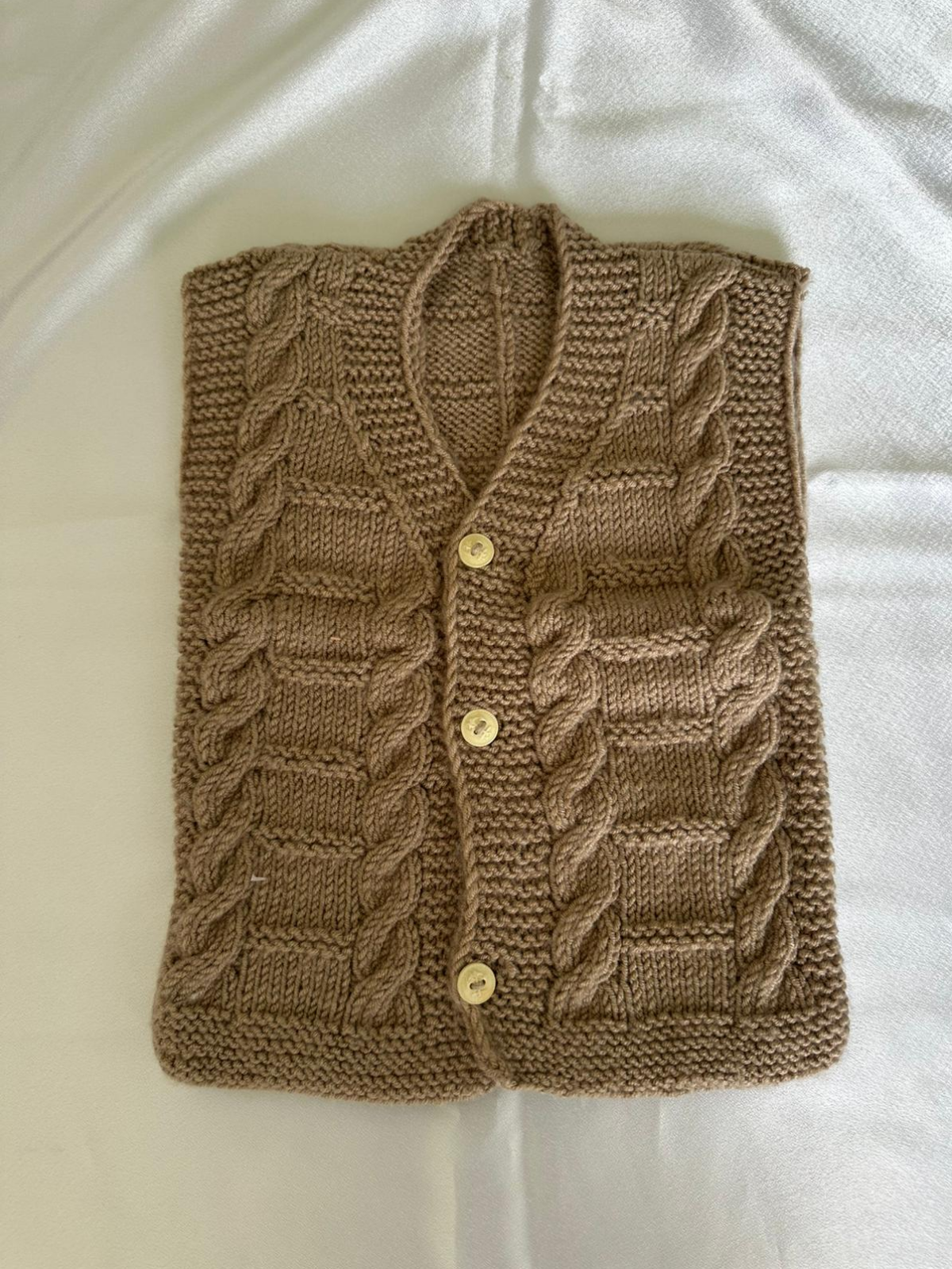Renk Seçenekleri: Kahverengi renk tonnuyla sunulan ürünümüz, her tarza ve kombinasyona uyum sağlar. Ayrıca farklı renk seçenekleriyle de taleplerinizi karşılamaktan memnuniyet duyarız.Doku : Yumuşak, hafif, tüylennme yapmayan.Beden Aralığı: Rahat kesimi ve esnek dokusuyla bebeklerinizin rahat hareket etmesine olanak tanır.Özel Tasarım: Tamamen el emeği ile örülmüş.Düğmeli, esnek ve rahat kesim. Zarif detaylar ve özenli işçilikle hazırlanmıştır. Bebekleriniz için en rahat ve şık tasarımı sunmayı amaçladık.