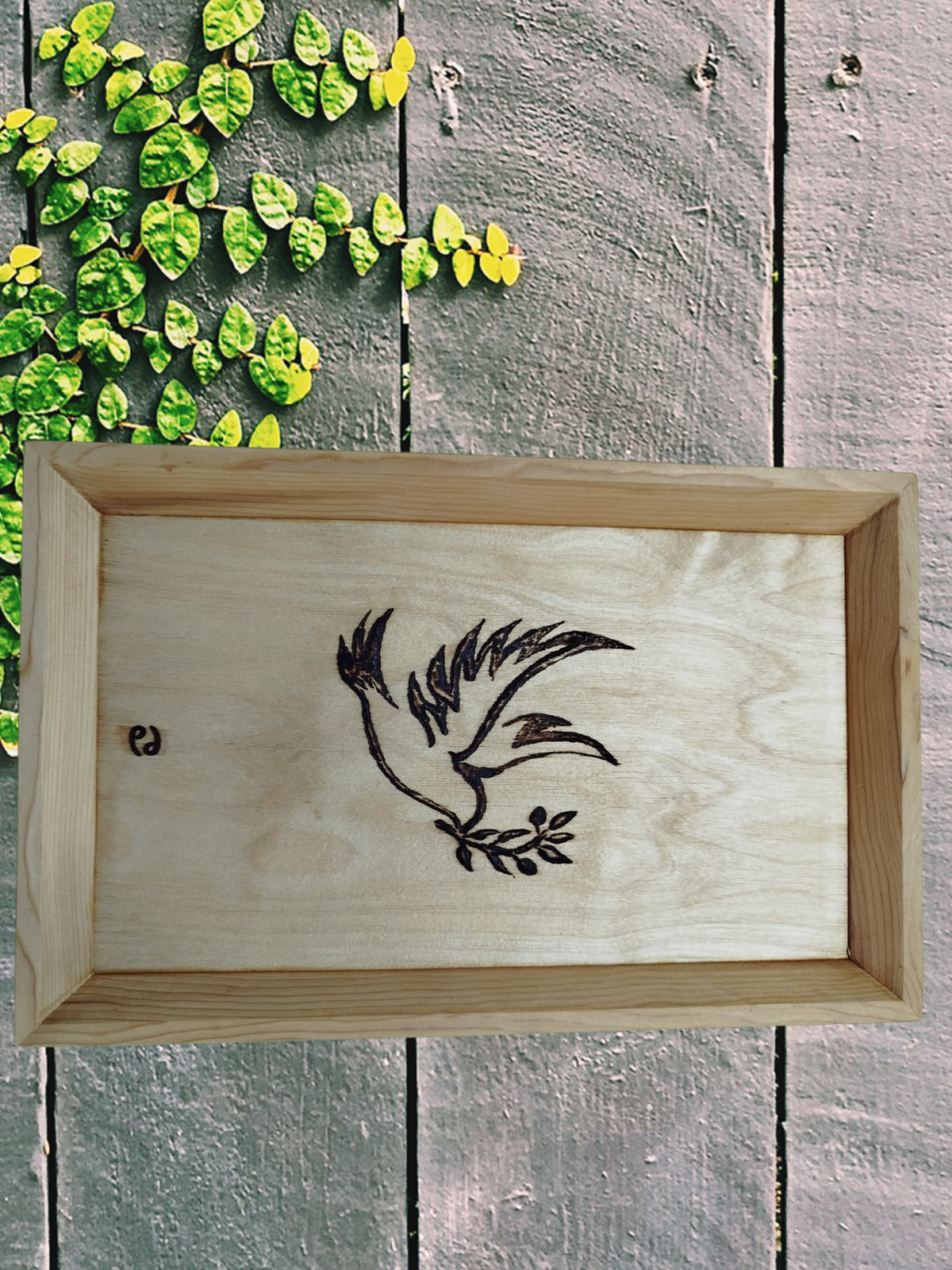 Zeytin dalını taşıyan kuş figürüyle tasarlanan bu özel ahşap tepsi, yaşam alanlarınıza anlam ve estetik katmak için özenle hazırlandı.