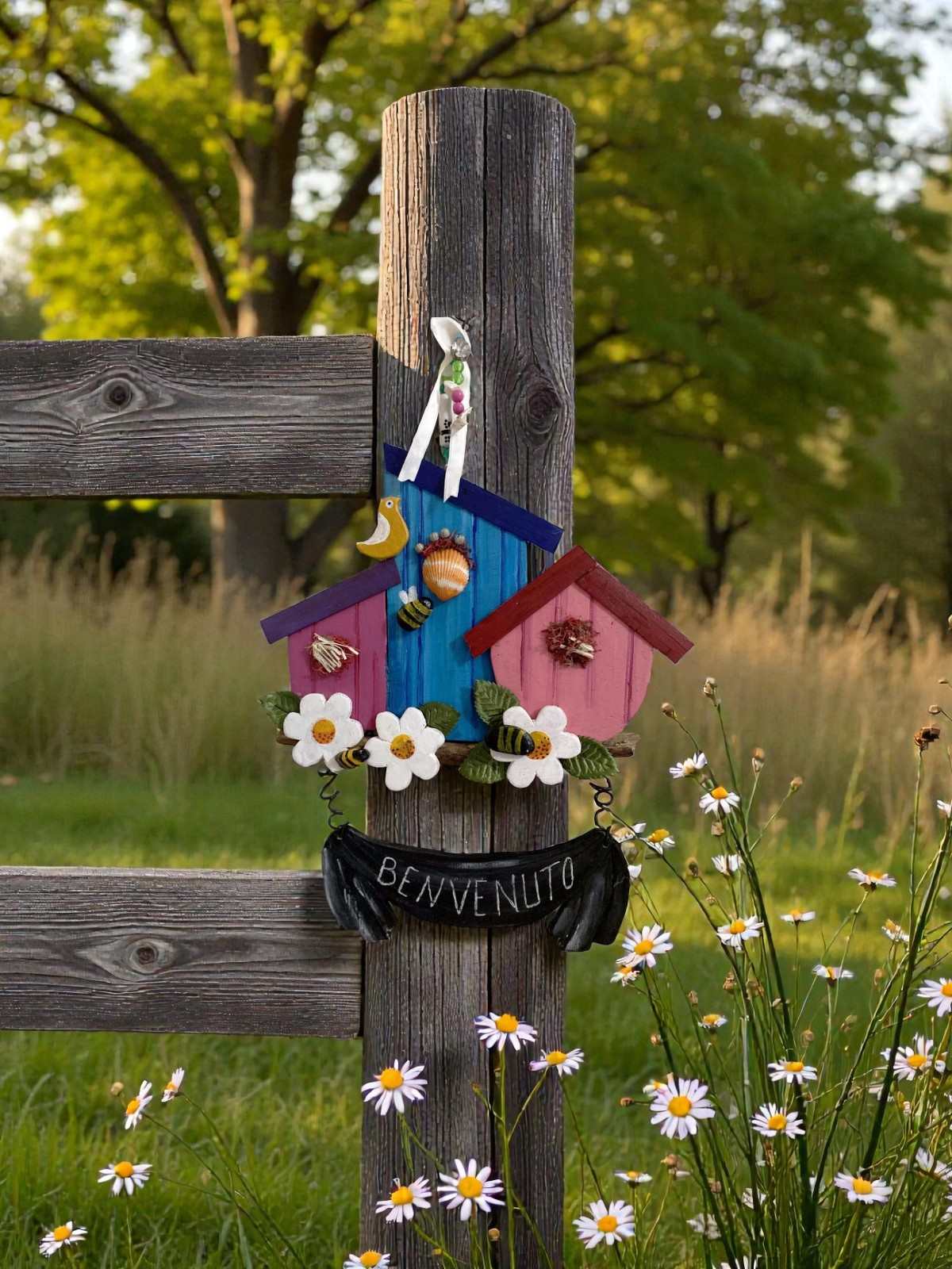 Malzeme: Doğal ahşap, kurutulmuş çiçekler /ince tel /Akrilik boya detaylar (kullanımına göre uyarlanabilir)