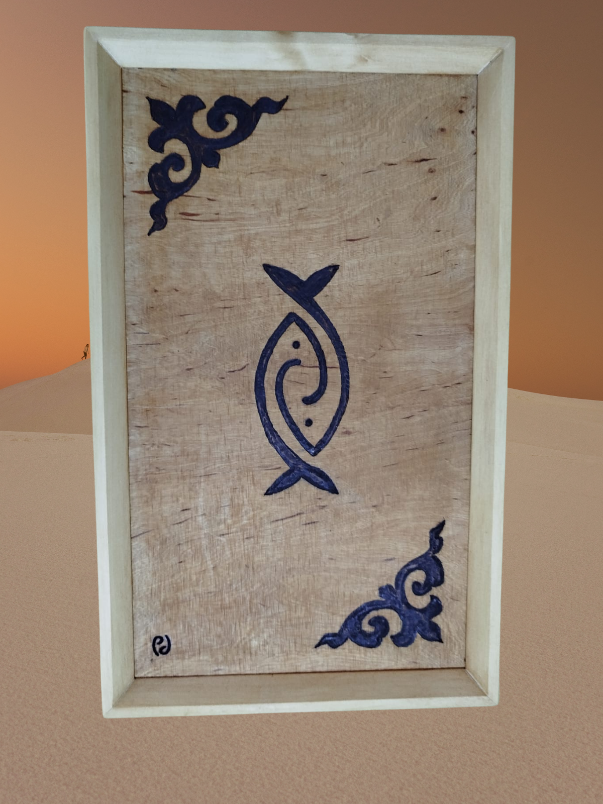 Doğanın sıcak dokusunu ve el işçiliğinin zarafetini bir araya getiren bu özel tasarım tepsi, yaşam alanlarınıza sade ama karakterli bir dokunuş katmak için üretildi. Huş kontra zemin üzerine özenle işlenen lacivert motifler, deniz esintisini ve geleneksel sanatın modern yorumunu yansıtır.
